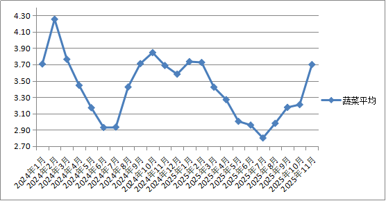 18种主销蔬菜平均零售价格每500克为3.70元,环比上涨15.26%,同比上涨0.27%。