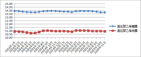 七、农业生产资料价格环比略有涨跌,同比涨少降多。11月份,我省尿素、磷酸二铵、棚膜、地膜平均销售价格环比、同比均1涨3降。