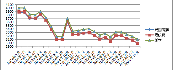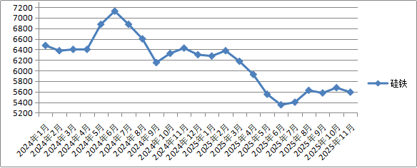 四、黑色金属价格环比、同比均下降。11月份,我省圆钢、螺纹钢、线材、硅铁出厂价格环比、同比均下降。
