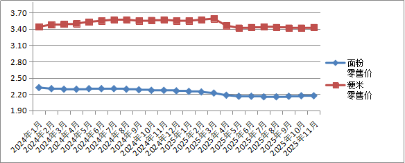 一、粮油价格环比有涨有跌,同比降多升少。11月份,我省小麦收购价、玉米收购价、面粉、粳米、菜籽油平均零售价环比1涨2降2平;同比2涨3降。