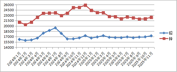 五、有色金属价格环比、同比均涨多降少。11月份,我省五种有色金属铜、铝、镍、铅、锌出厂价环比4涨1降;同比3涨2降。
