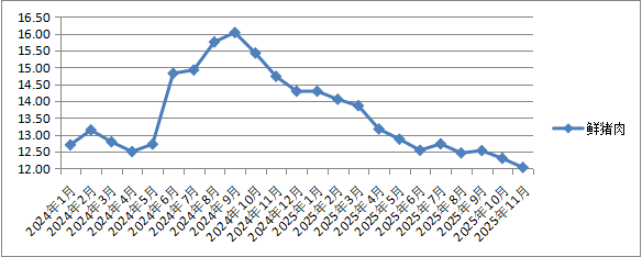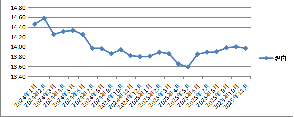 二、肉禽蛋类价格环比以降为主,同比猪肉、鸡蛋降幅较大。11月份,我省鲜猪肉、牛肉、羊肉、鸡肉、鸡蛋平均零售价环比1涨4降;同比为3涨2降。